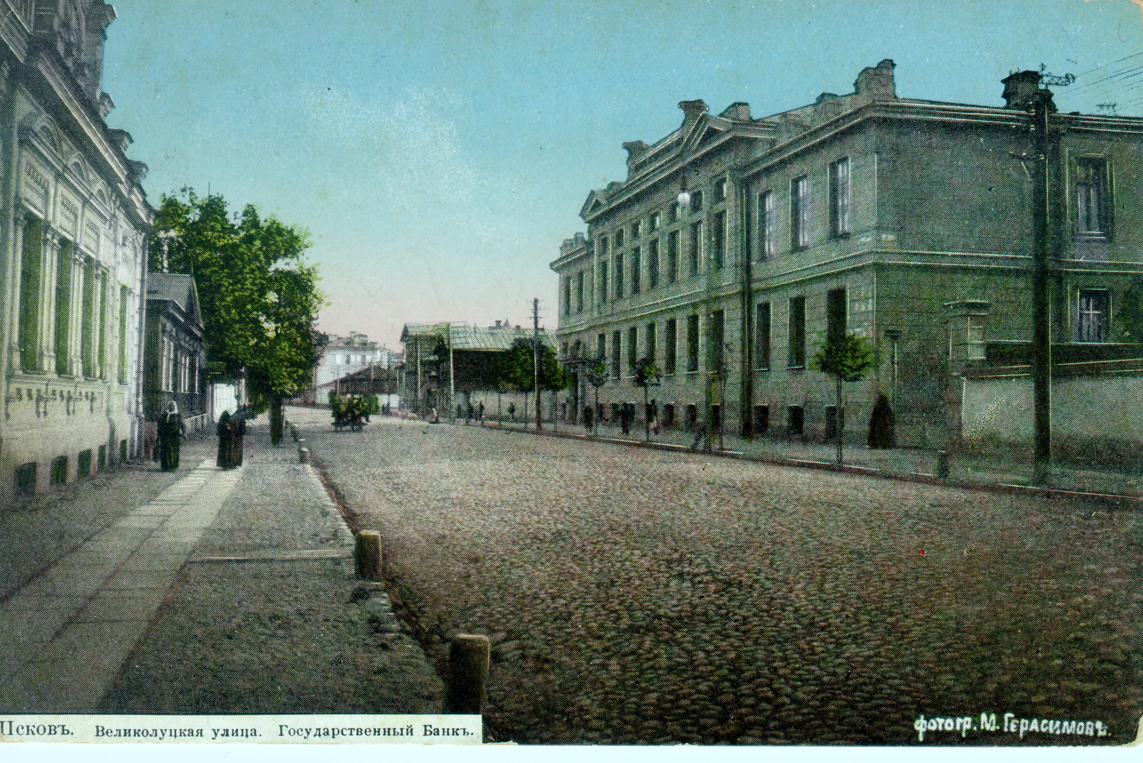 До 1927 года в пределах Псковской губернии Госбанк РСФСР (с 1923 г. — Госбанк СССР) имел два отделения — Псковское и Великолукское. Работа отделений была направлена на развитие государственной торговли, промышленности и кооперации. На основе вексельного оборота развивались такие виды банковского кредитования торговли и промышленности, как учет векселей, ссуды до востребования со специальных текущих счетов, обеспеченных векселями, и срочные ссуды под залог векселей. Получило распространение и прямое целевое кредитование предприятий и объединений — ссуды под залог хлеба, кожи, хлопка, а также под экспортные и импортные товары.